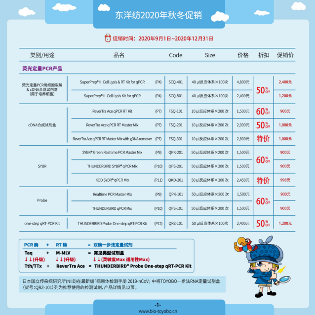 这里有KOD酶家族的最新高保真Master Mix——KOD One 系列,延伸速度可达1 sec/kb,性能卓越。更有高性能的qPCR系列产品,以及用于细胞逆转录的SuperPrep系列可从裂解液直接合成高品质的cDNA。